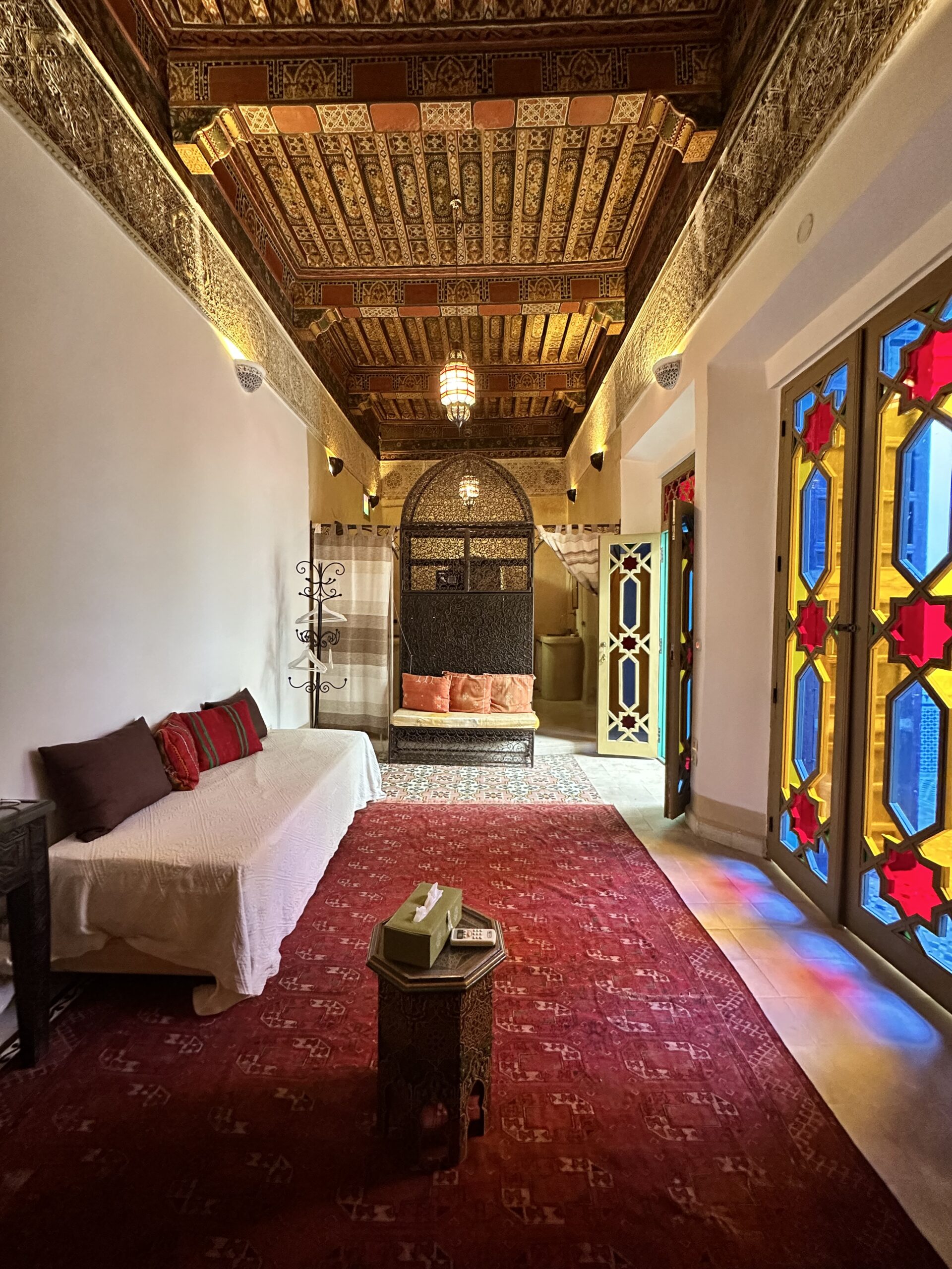 Accommodation A selection of exclusive rooms available a choice of exclusive rooms in a historic riad private, sunny terrace plenty of space to relax, with sofas, TV room, swimming pool and fireplaces fast Wi-Fi perfect location in the historic heart of Marrakech skontaktuj się exclusive suite ground-floor room modern room terrace room modern room traditional bathroom modern bathroom corridor